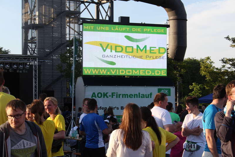 Pünktlich um 19 Uhr ertönt in der Ferne der Startschuß zum Lauf und rund 3.200 Menschen machen sich zeitgleich wie eine Lawine auf den Weg zum Ziel. Unter ihnen Nicole Brandt, die bei Temperaturen um die 30° Celsius und extrem hoher Luftfeuchtigkeit genauso ins Schwitzen kommt wie auch die gesamte Laufgruppe des Pflegedienstes VidoMed mit insgesamt 12 Läuferinnen und Läufern.